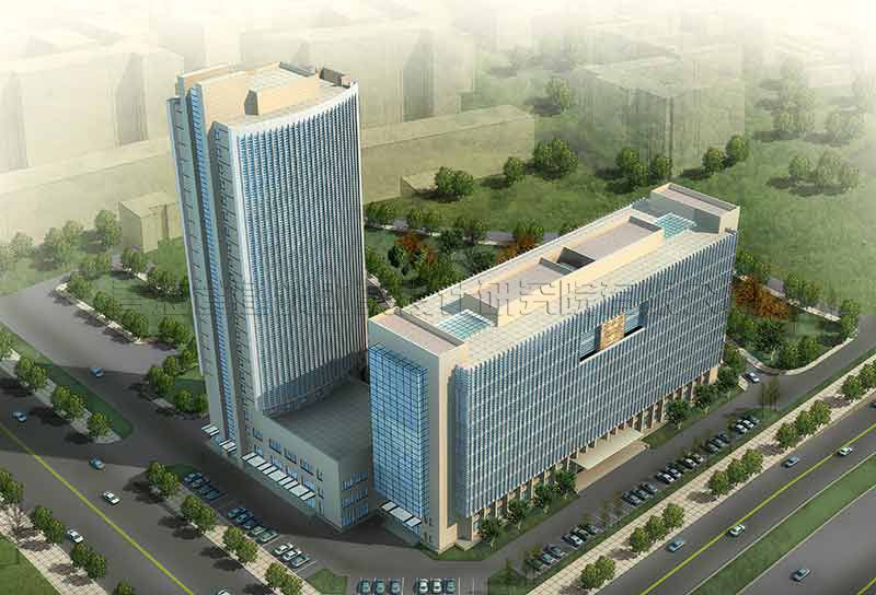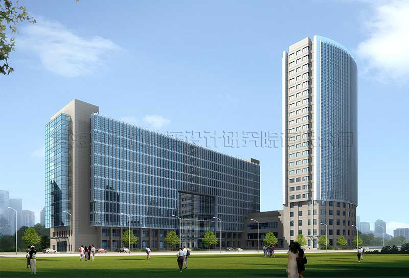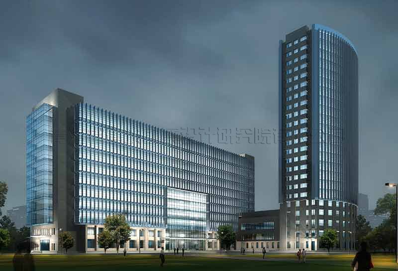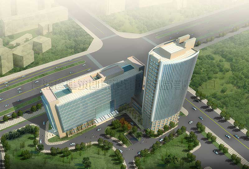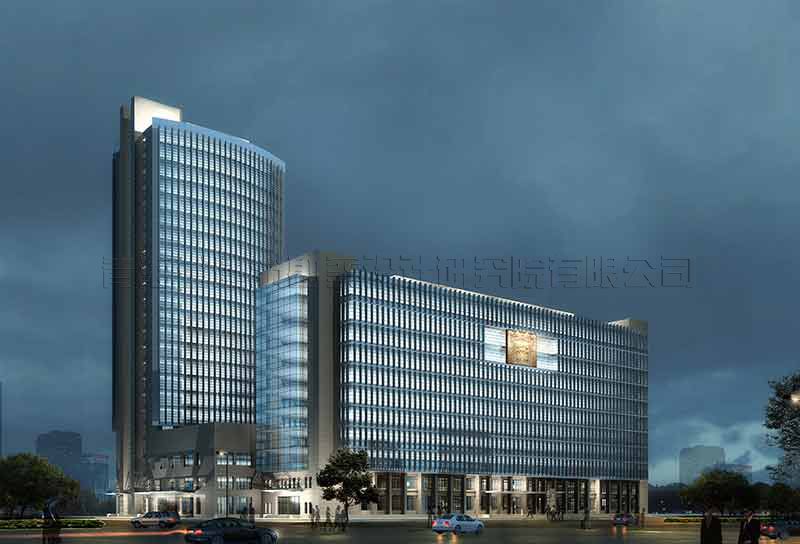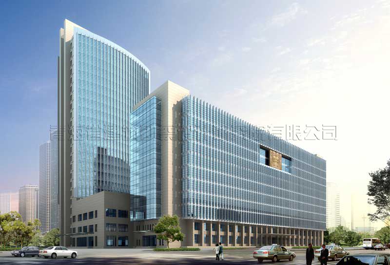 該項目采用豎向線條的組合、劃分,使整個建筑群體充滿向上升騰的動勢;大面積的玻璃幕墻和金屬線條的組合更具現(xiàn)代氣息。綜合辦公樓的舒展形體與賓館寫字樓的挺拔形體組合,產(chǎn)生出一種動態(tài)的均衡以及獨特的韻律效果,從而與周邊環(huán)境實現(xiàn)了完美的融合。