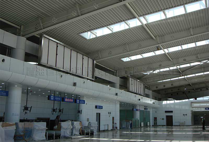 7.本工程采用散熱器和球形噴口送熱風的采暖形式。通風在侯機室和主要房間內設新風換氣機組,充分考慮了熱量回收,減少能耗,使航站樓成為節(jié)能建筑。