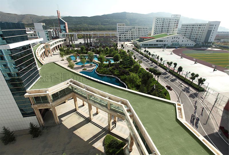 2.其復雜程度:主要有1.在用地緊張前提下,要做到校園布置合理、又要展現(xiàn)百年名校的風采及嚴謹育人的作風難度較大。2.綜合辦公樓由圖書閱覽室、行政辦公室及400人報告廳組成,中間由超大尺度(40米×15米)空廊連接構(gòu)成氣勢龐大綜合辦公樓。3.食堂主要由職工、學生餐廳、學生浴室、地下鍋爐房為一體的綜合樓。根據(jù)建設單位要求,學生就餐人數(shù)為2400名。老師就餐人數(shù)為150名。建筑屋面首次采用斜屋頂,最高處17.36,最低處3.96米,建筑東西長90.5米,地上共三層,地下一層,整個斜屋面采用人造草坪,與自然環(huán)境融為一體。