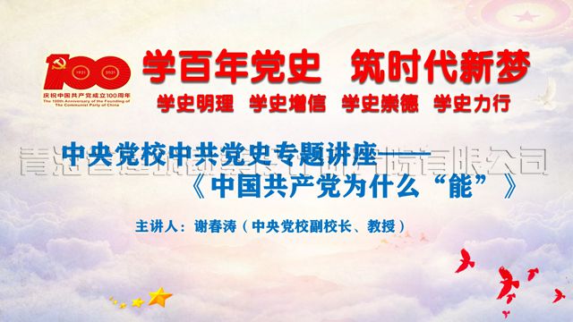 2021年6月11日,公司黨委組織中層以上領(lǐng)導、全體黨員及入黨積極分子在公司六樓會議室觀看“中央黨校中共黨史網(wǎng)絡(luò)專題講座——《中國共產(chǎn)黨為什么‘能’》”,主講人:中央黨校(國家行政學院)副校(院)長 、教授——謝春濤。這是繼4月20日公司黨委組織觀看中共黨史專題講座——《建立新中國的構(gòu)想及其實踐》之后的第二講。
