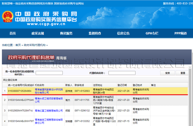 近日,從中國(guó)政府采購(gòu)網(wǎng)、青海政府采購(gòu)網(wǎng)傳來(lái)喜訊,我公司成功取得政府采購(gòu)招標(biāo)代理機(jī)構(gòu)資格,標(biāo)志著我公司又將邁進(jìn)新的業(yè)務(wù)領(lǐng)域。